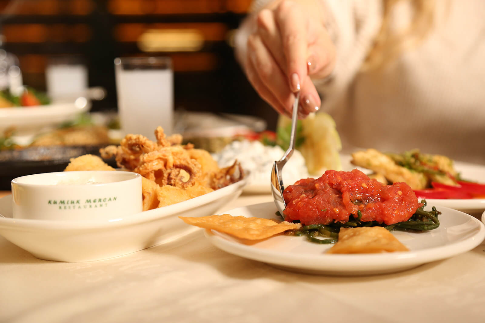 Zengin meze seçenekleri ve modern mimarisi ile Kumluk Mercan Restaurant